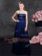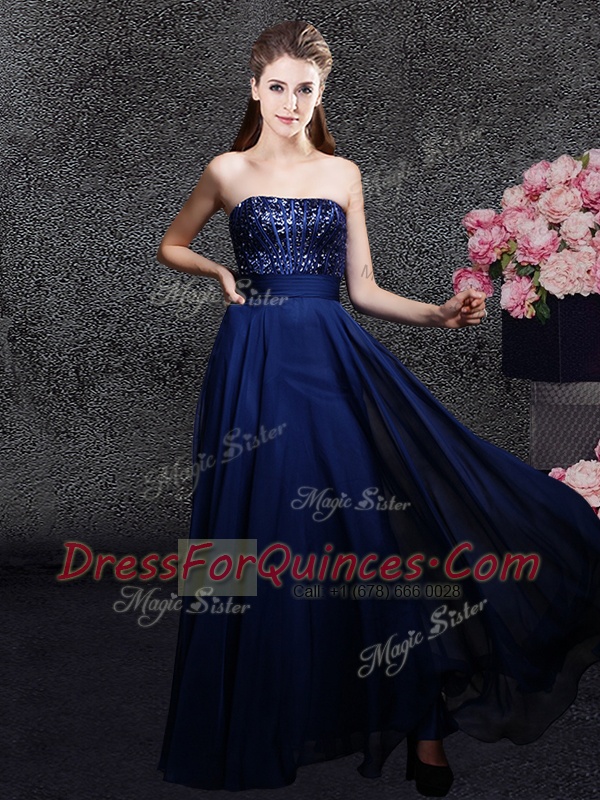 Sleeveless Floor Length Sequins Zipper Homecoming Dress with Navy Blue