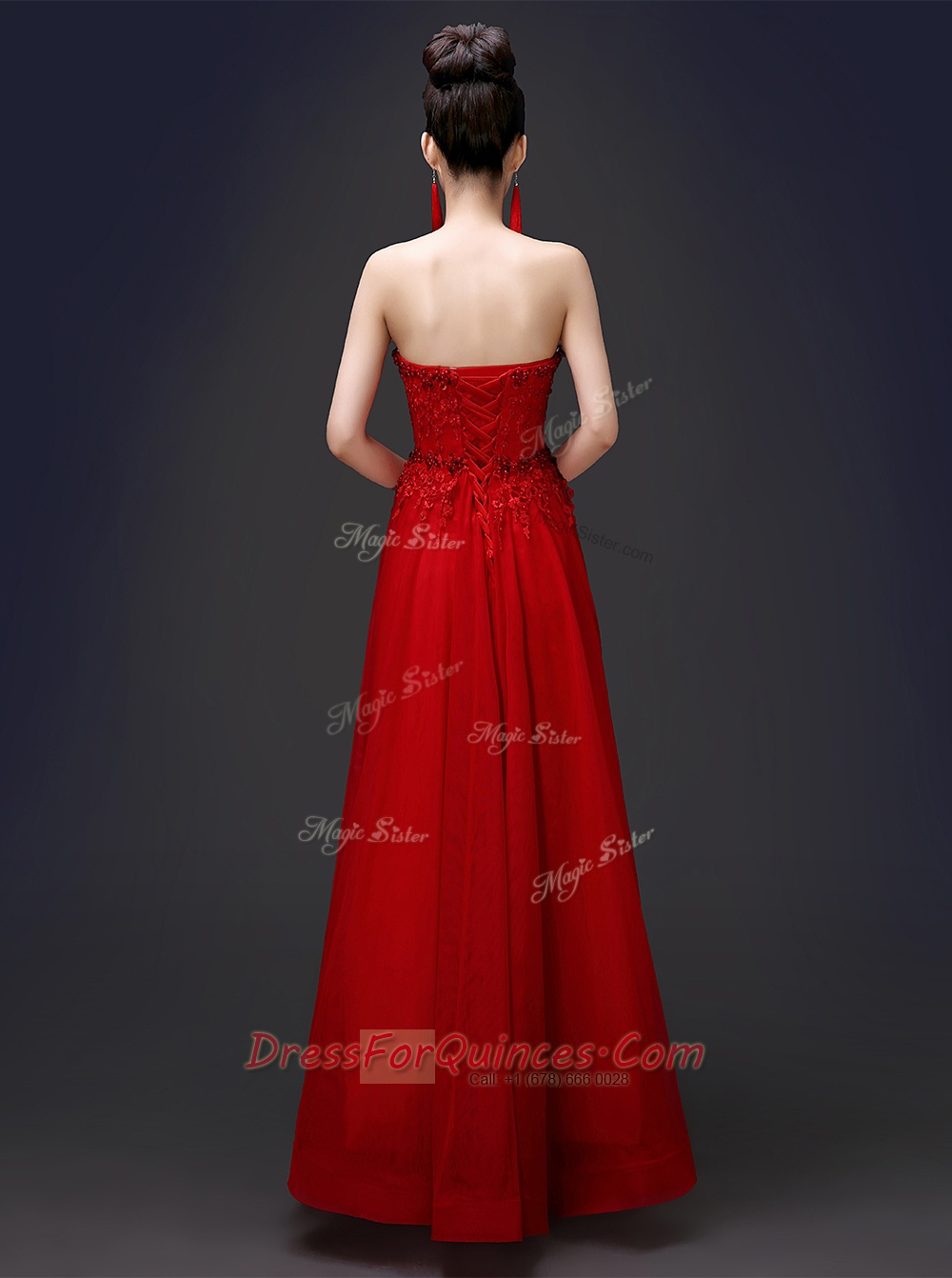 Sleeveless Lace Up Floor Length Beading and Appliques Prom Dresses