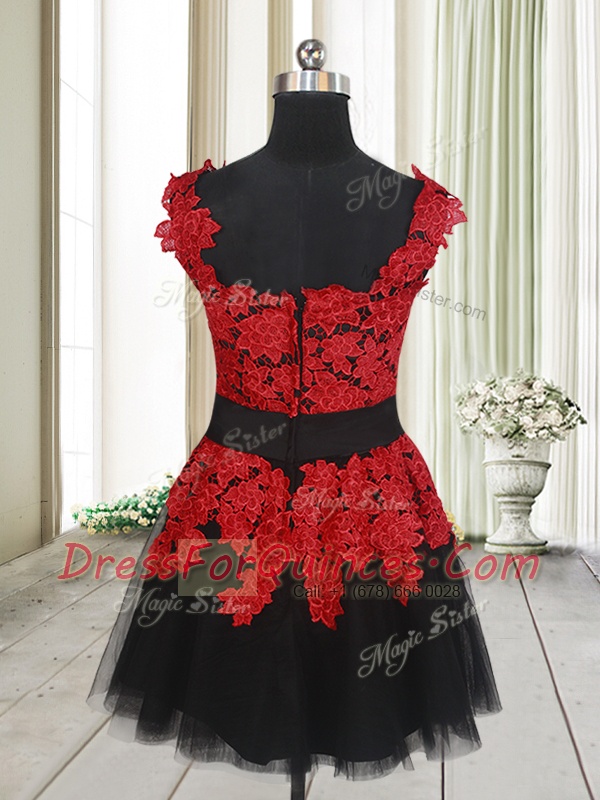 Square Sleeveless Zipper Mini Length Appliques Prom Gown