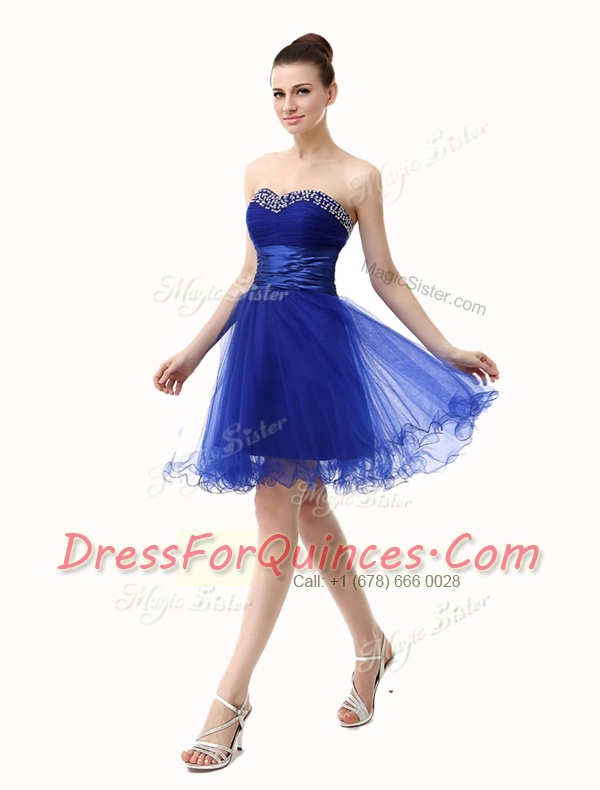 Stunning Royal Blue Dress for Prom Prom and Party and For with Ruffled Layers and Sequins and Ruching Sweetheart Sleeveless Lace Up