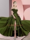 Stylish Olive Green Homecoming Dress Prom and Party with Beading Off The Shoulder Sleeveless Sweep Train Backless