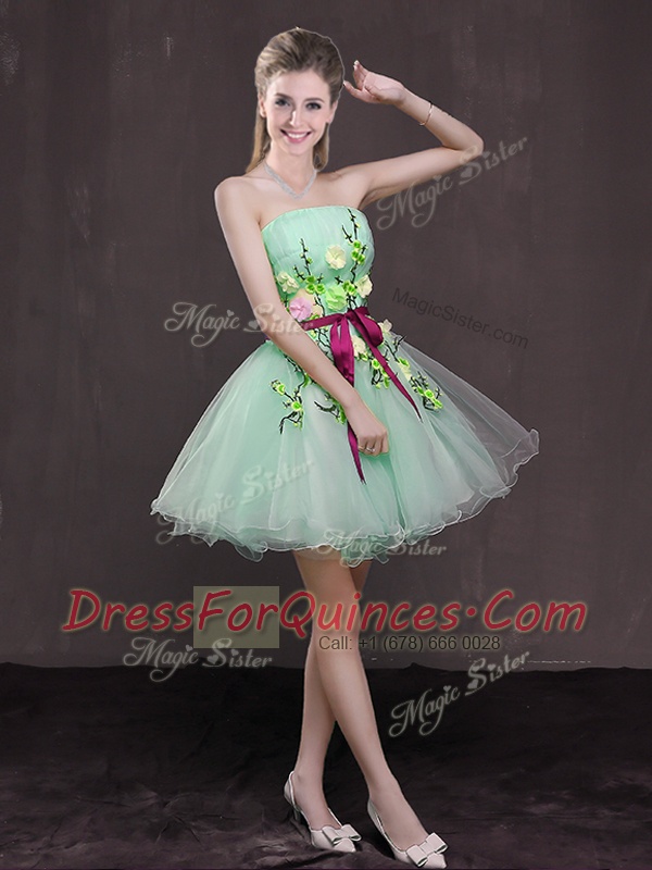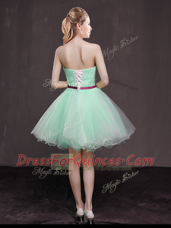 Suitable Apple Green Sleeveless Organza Lace Up Prom Party Dress for Prom and Party