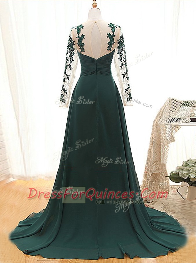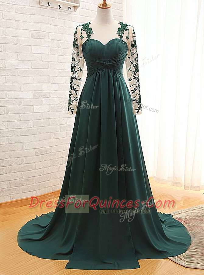 Suitable Long Sleeves Satin With Train Zipper Homecoming Dress in Teal with Lace