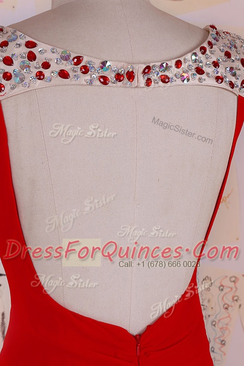Super Chiffon Sleeveless Floor Length Prom Evening Gown and Beading