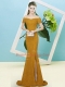 Sweep Train Mermaid Prom Dresses Brown Off The Shoulder Sequined Short Sleeves Zipper