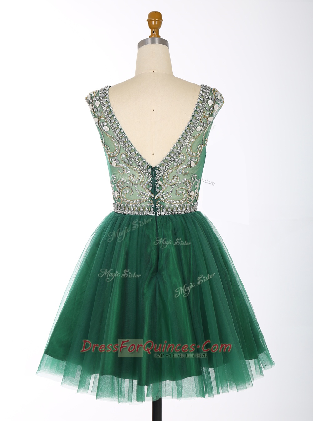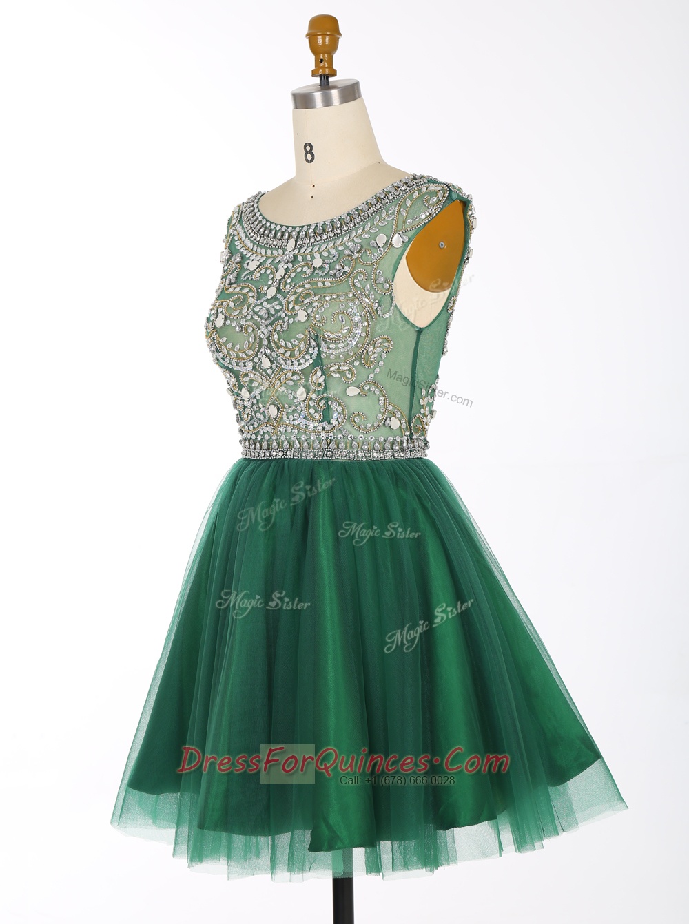 Sweet Scoop Sleeveless Prom Party Dress Mini Length Beading Green Chiffon