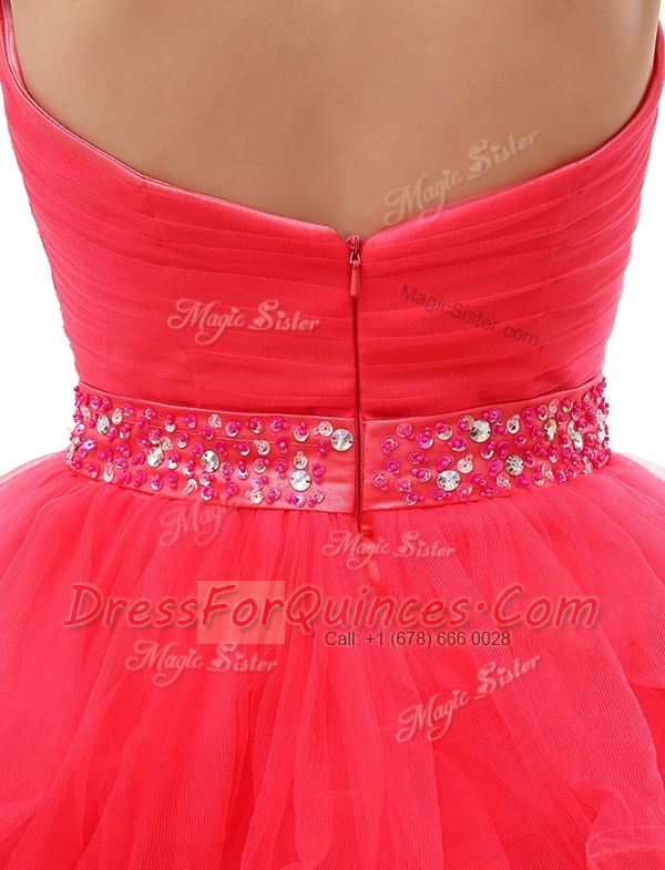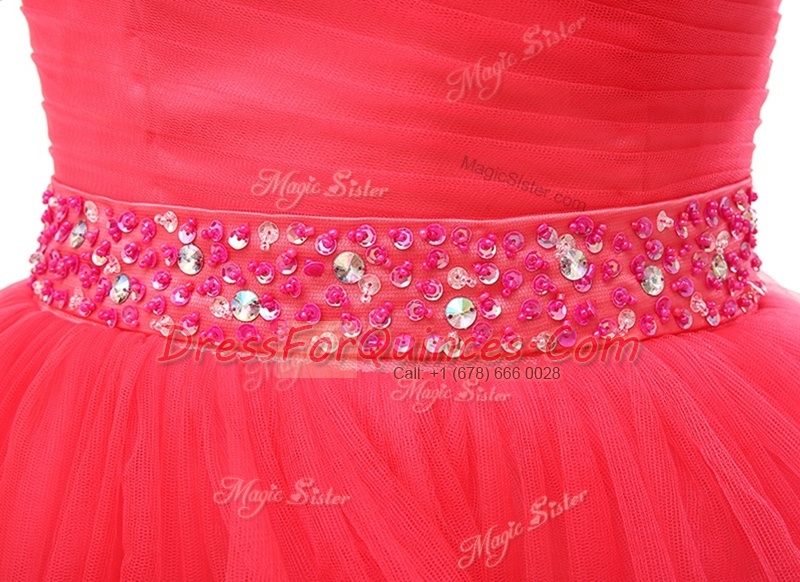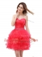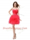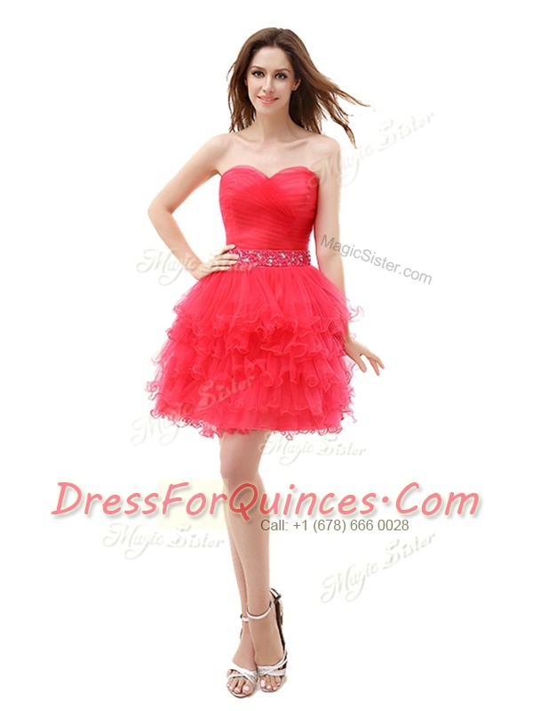 Sweetheart Sleeveless Prom Party Dress Knee Length Beading and Ruffled Layers Red Organza