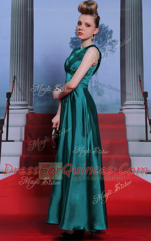 Teal Evening Dress Prom and Party and For with Belt Scoop Sleeveless Side Zipper