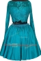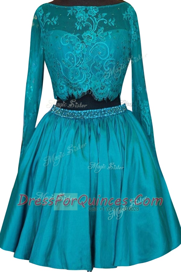 Teal Long Sleeves Satin Zipper Dress for Prom for Prom and Party