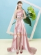 Trendy Baby Pink Empire One Shoulder Sleeveless Elastic Woven Satin and Sequined High Low Lace Up Sequins Prom Dress