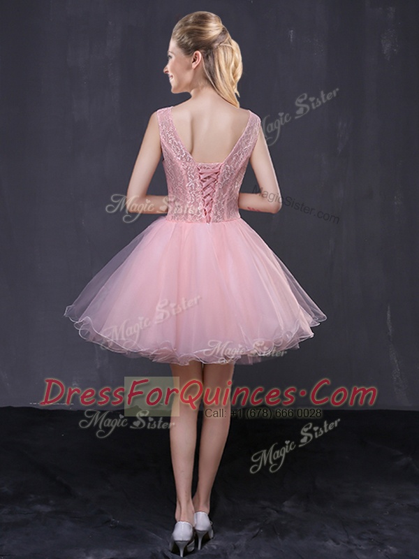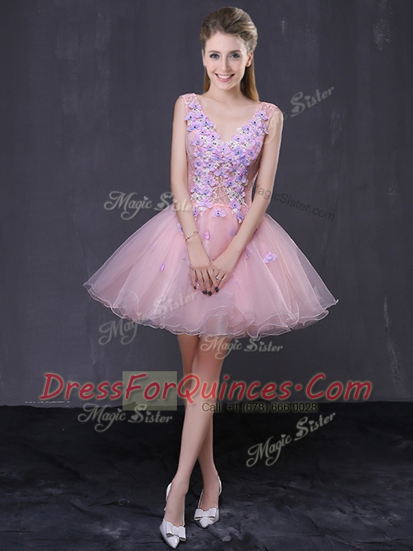 V-neck Sleeveless Organza Hand Made Flower Lace Up