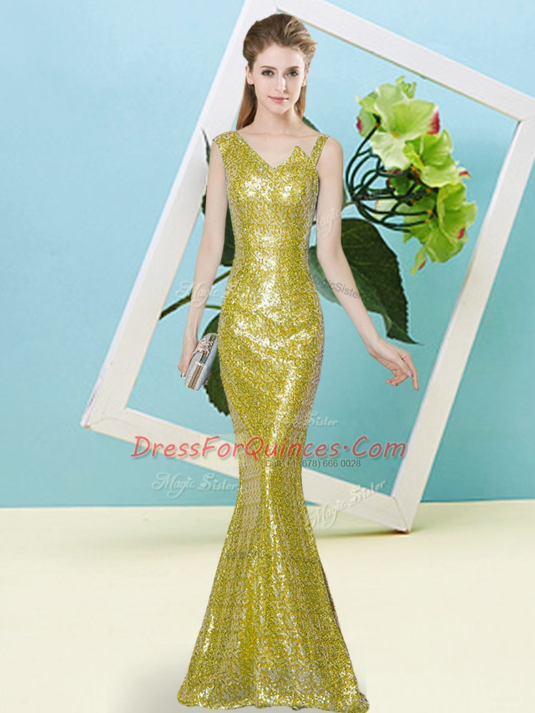Yellow Mermaid Sequined Asymmetric Sleeveless Sequins Floor Length Zipper Prom Evening Gown