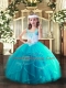 Aqua Blue Straps Neckline Beading and Ruffles Pageant Gowns Sleeveless Lace Up
