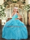 Custom Fit Aqua Blue Sleeveless Floor Length Beading and Ruffles Lace Up Pageant Dress Womens