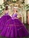 Fancy V-neck Sleeveless Winning Pageant Gowns Floor Length Beading Purple Tulle
