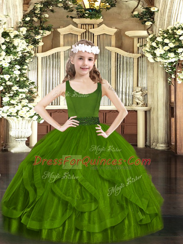 Fashionable Floor Length Zipper Custom Made Pageant Dress Olive Green for Party and Quinceanera with Beading and Ruffles