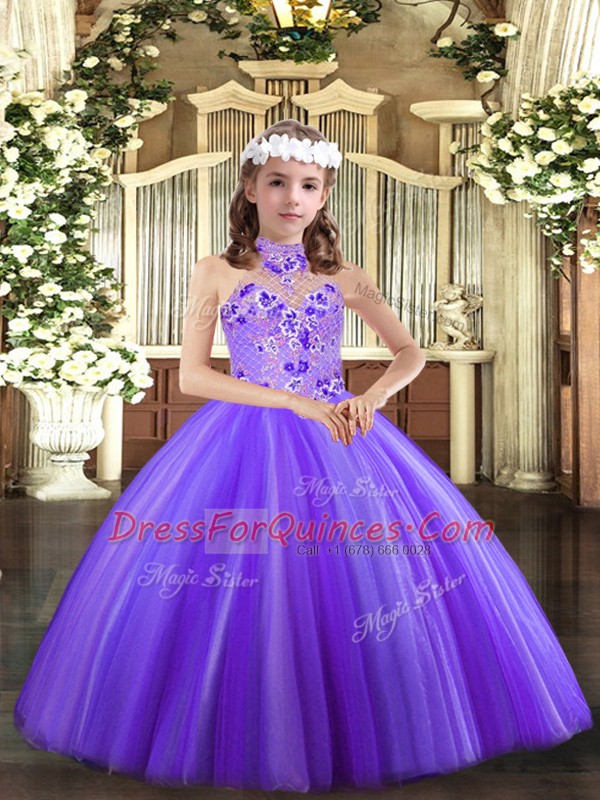 Floor Length Lavender Pageant Dress Toddler Tulle Sleeveless Appliques