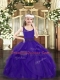 Hot Selling Purple Scoop Neckline Beading and Ruffles Pageant Dress Womens Sleeveless Zipper