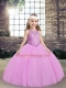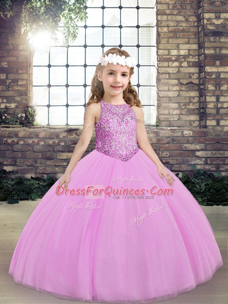 Lilac Ball Gowns Tulle Scoop Sleeveless Beading Floor Length Lace Up Pageant Dresses