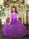 Super Eggplant Purple and Purple Halter Top Lace Up Ruffles Pageant Gowns Sleeveless