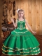 Unique Green Straps Neckline Embroidery and Ruffled Layers Pageant Dress for Girls Sleeveless Lace Up