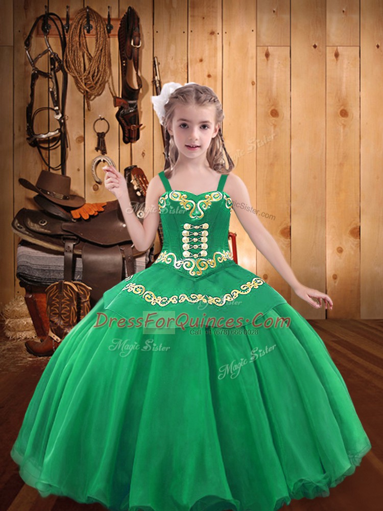 Wonderful Embroidery and Ruffles Glitz Pageant Dress Turquoise Lace Up Sleeveless Floor Length