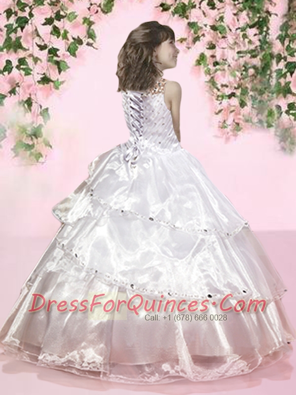 2014 Elegant Watermelon V-neck Ball Gown Little Girl Pageant Dress with Beading