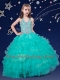 Admirable Halter Top Turquoise Sleeveless Beading and Ruffles Floor Length Little Girl Pageant Dress