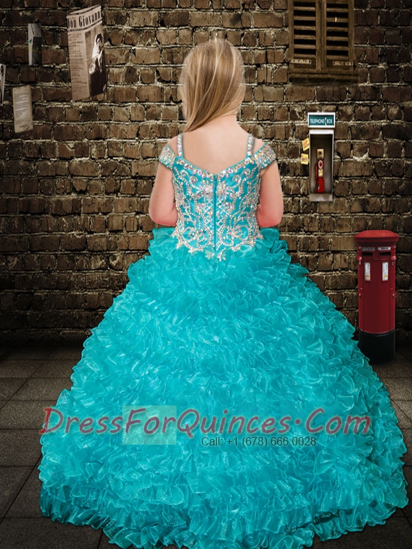 Aqua Blue Ball Gown Straps Beading Pretty Little Gril Pageant Dress