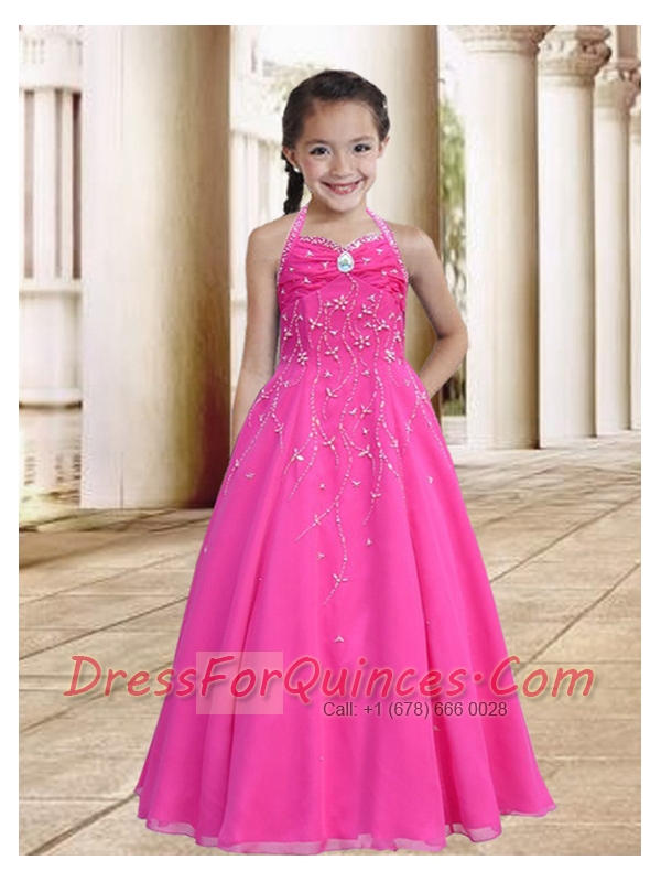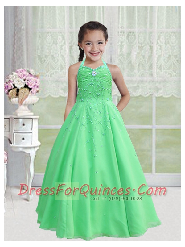Aqua Blue Halter Cheap Little Gril Pageant Dress with Beades Decorate