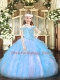 Ball Gowns Child Pageant Dress Baby Blue Off The Shoulder Organza Sleeveless Floor Length Lace Up