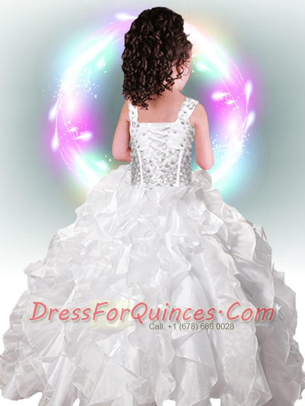 Beautiful Straps Ball Gown Little Girl Pageant Dresses with Beading in Blue for 2014