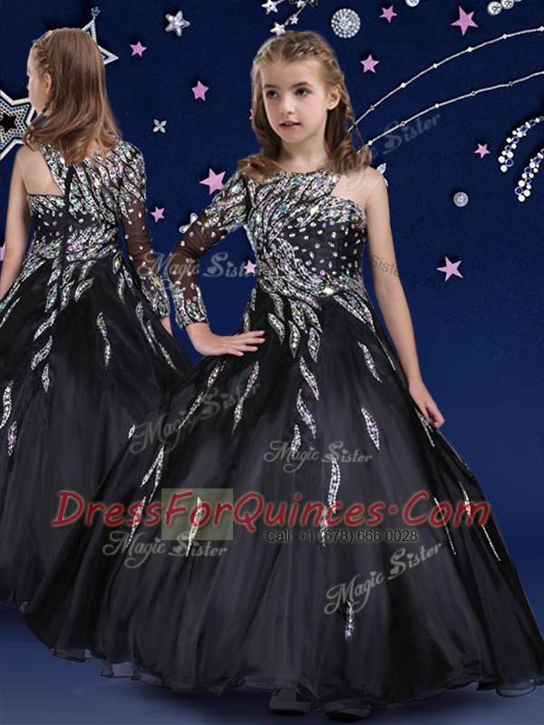 Black Little Girl Pageant Gowns Quinceanera and Wedding Party and For with Beading and Ruffles Asymmetric Sleeveless Zipper