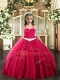 Coral Red Ball Gowns Tulle Straps Sleeveless Appliques Lace Up Kids Formal Wear Sweep Train