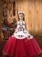 Coral Red Straps Lace Up Embroidery Little Girl Pageant Gowns Sleeveless