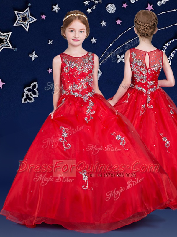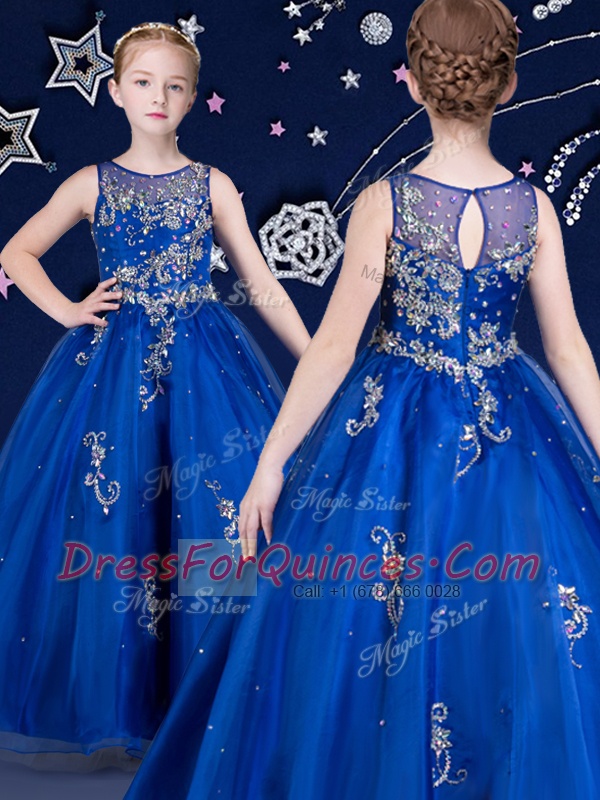 Cute White and Red and Royal Blue Little Girl Pageant Gowns Quinceanera and Wedding Party and For with Beading Scoop Sleeveless Zipper
