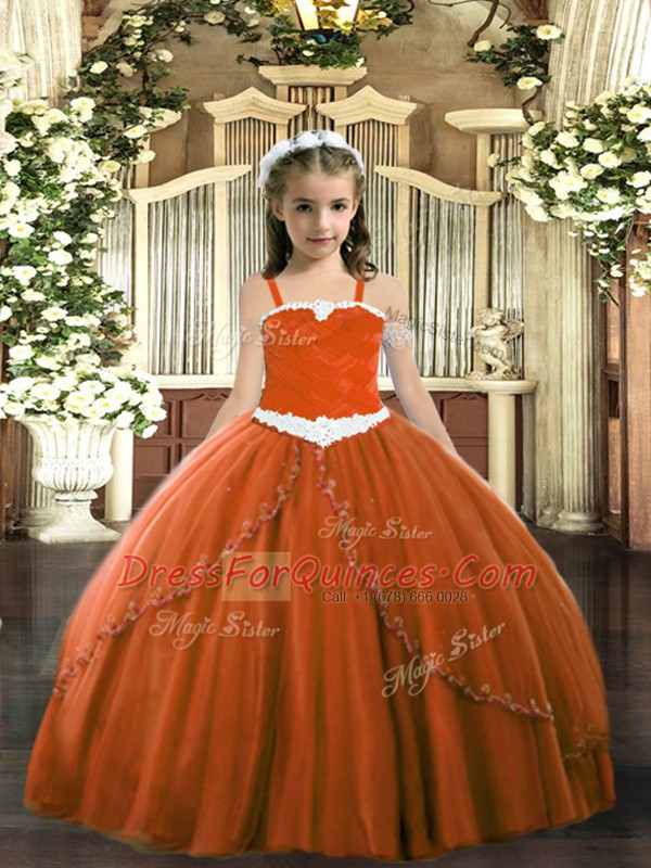 Dazzling Rust Red Little Girl Pageant Dress Tulle Sweep Train Sleeveless Appliques