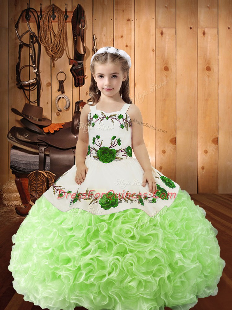 Dazzling Yellow Green Sleeveless Floor Length Embroidery and Ruffles Lace Up Little Girls Pageant Gowns
