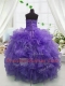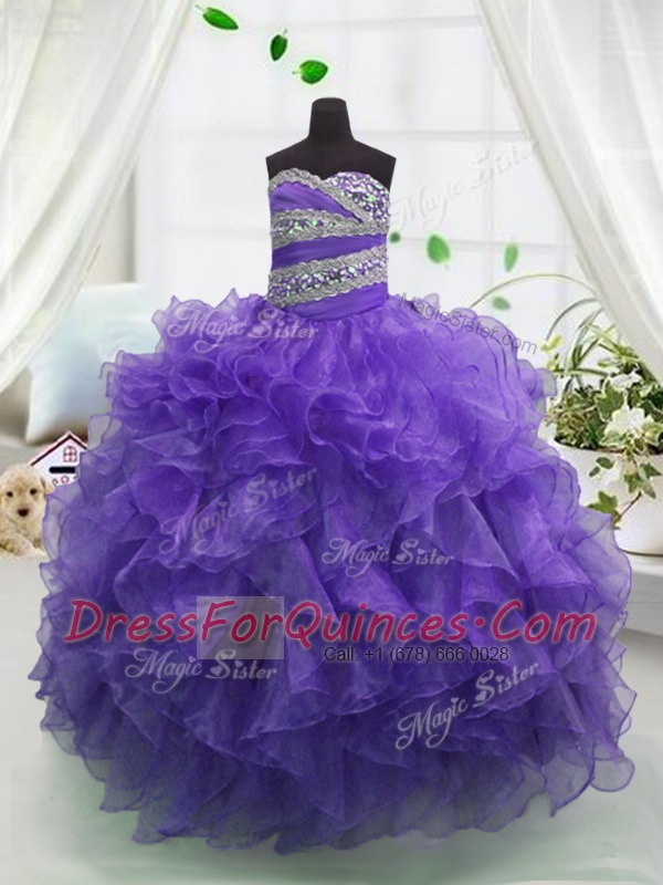 Eggplant Purple Sweetheart Lace Up Beading and Ruffles Little Girls Pageant Dress Sleeveless