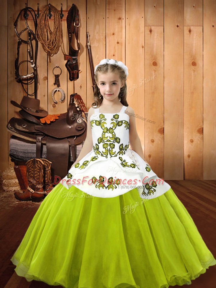 Elegant Ball Gowns Little Girls Pageant Dress Yellow Green Straps Organza Sleeveless Floor Length Lace Up