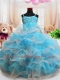 Extravagant Straps Baby Blue Organza Zipper Little Girls Pageant Dress Sleeveless Floor Length Beading and Appliques and Ruffled Layers