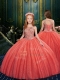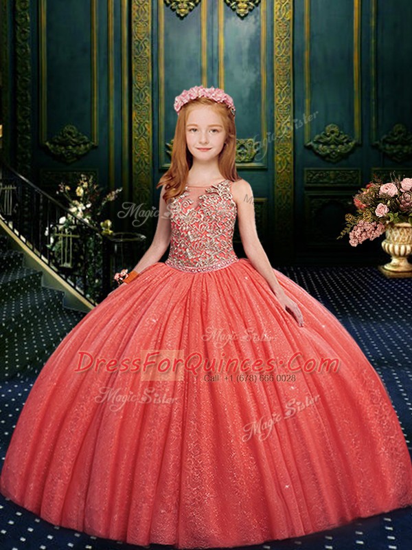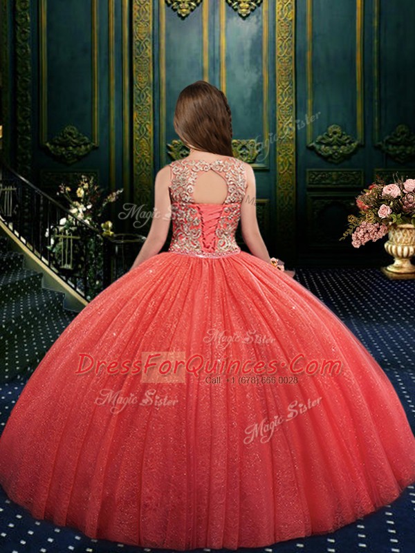 Eye-catching Watermelon Red Lace Up Little Girls Pageant Gowns Appliques Sleeveless Floor Length