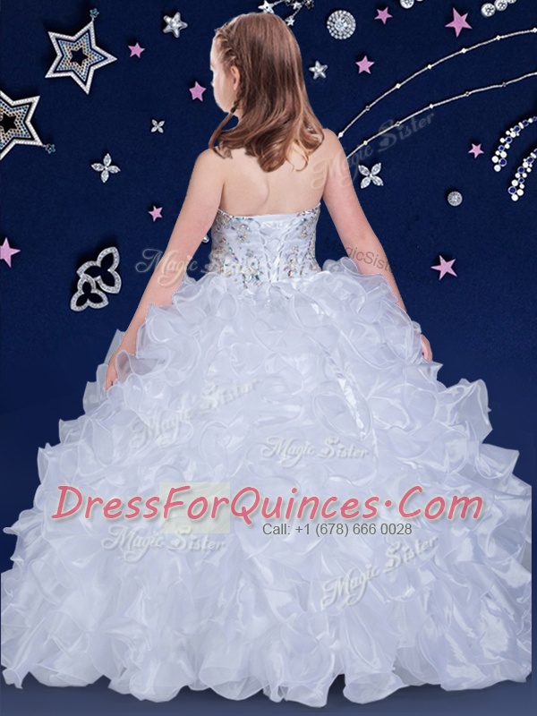 Fantastic White Girls Pageant Dresses Quinceanera and Wedding Party and For with Beading and Ruffles Halter Top Sleeveless Lace Up