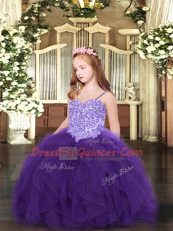 Floor Length Lace Up Little Girls Pageant Dress Wholesale Purple for Party and Quinceanera with Appliques and Ruffles