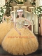 Gold Child Pageant Dress Party and Quinceanera with Beading and Ruffles Straps Sleeveless Lace Up