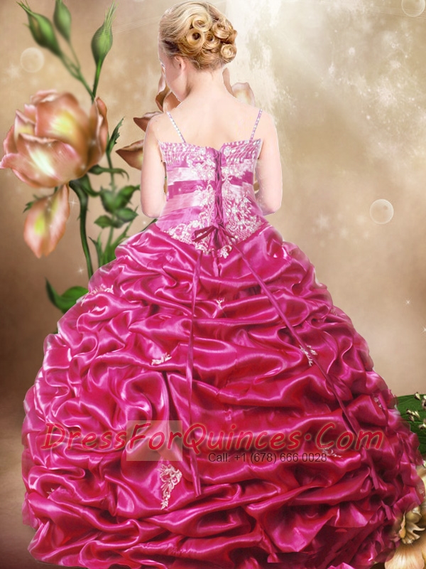 Gorgeous Spaghetti Straps Embroidery Beading Fuchsia Little Girl Pageant Dress