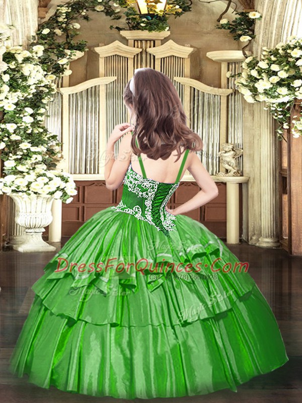 Hot Pink Sleeveless Appliques and Ruffled Layers Floor Length Little Girls Pageant Dress Wholesale