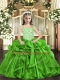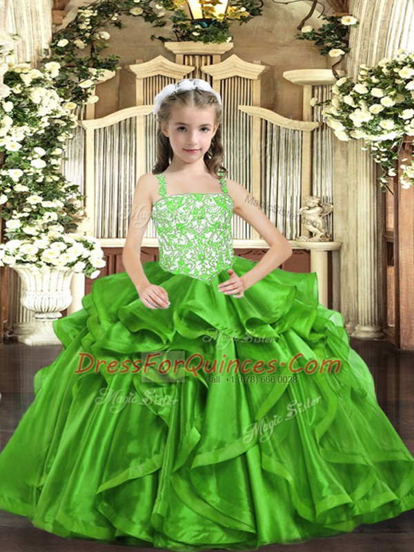 Hot Selling Green Lace Up Straps Beading and Ruffles Pageant Gowns For Girls Organza Sleeveless