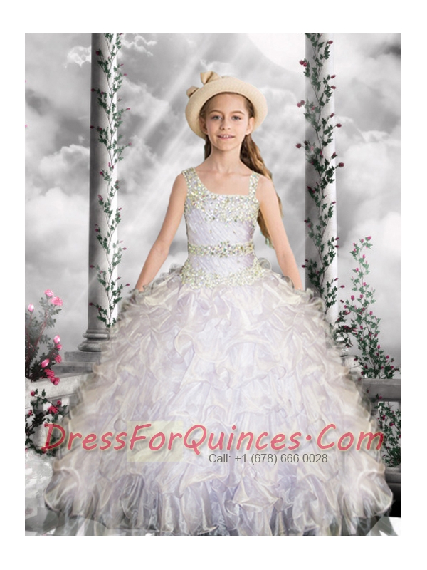 Lilac Little Gril Pageant Dress with Beading and Appliques