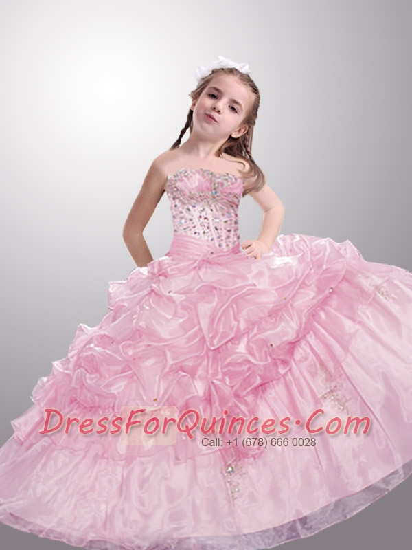 New Style Strapless Baby Pink Dress with Beading and Pick-ups for Little Girl Pageant